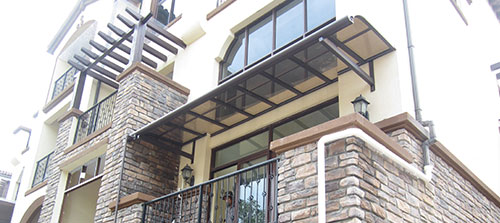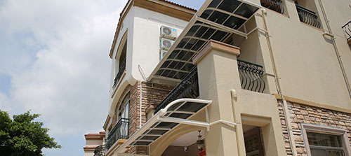 頂棚采用進口聚碳酸酯板,抗沖擊比玻璃強,有效防止高空墜物