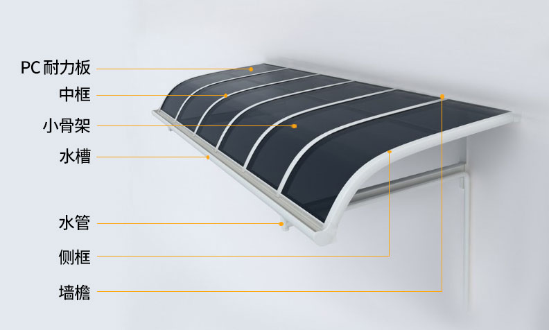 頂棚:聚碳酸酯板材,抗沖擊比玻璃強