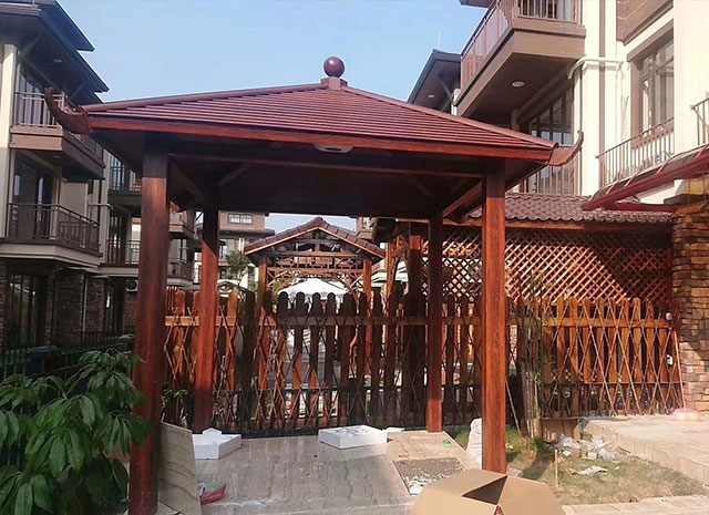 近些年來,鋁制涼亭受到了很多人的青睞,因為鋁制涼亭材質硬不易老化,后期基本不用維護,其外觀經過木紋處理轉印后,質地顏色都和木頭很相似,從遠處更是看不出來區別,經風摧日曬也不易掉色、老化、干裂,而這些在木制涼亭中都無法避免。而且鋁制涼亭建造后牢固性也很好!