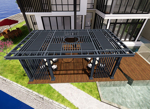 7、新中式鋁合涼亭顏色豐富,可供選擇的顏色眾多。既具有天然木質感和木質紋理,又可以根據自己的個性來定制需要的顏色。