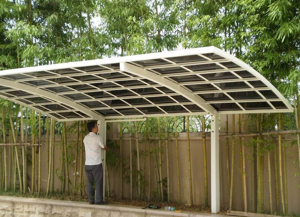 鋁合金停車棚采用靜電粉末噴涂工藝,耐腐蝕,不褪色,抗老化
