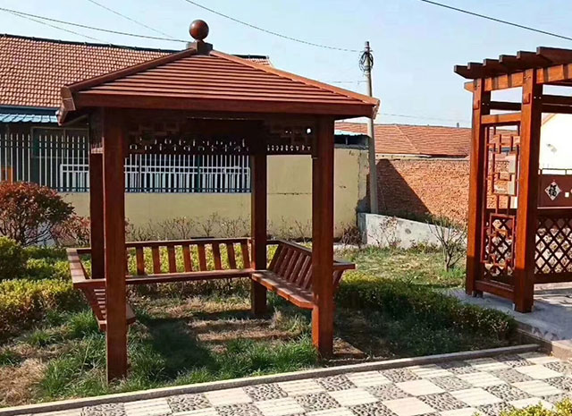 近些年來,鋁制涼亭受到了很多人的青睞,因為鋁制涼亭材質硬不易老化,后期基本不用維護,其外觀經過木紋處理轉印后,質地顏色都和木頭很相似,從遠處更是看不出來區別,經風摧日曬也不易掉色、老化、干裂,而這些在木制涼亭中都無法避免。而且鋁制涼亭建造后牢固性也很好!