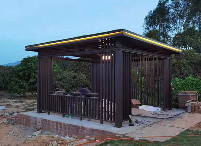 7、新中式鋁合涼亭顏色豐富,可供選擇的顏色眾多。既具有天然木質感和木質紋理,又可以根據自己的個性來定制需要的顏色。