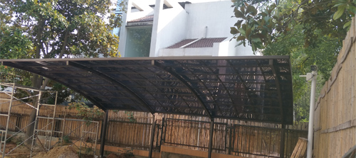 頂棚采用進口聚碳酸酯板,抗沖擊是玻璃的數百倍,有效防止高空墜物