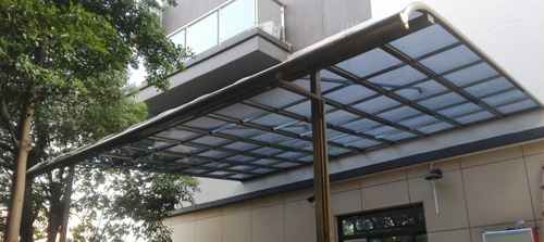 頂棚采用進口聚碳酸酯板,抗沖擊是玻璃的數百倍,有效防止高空墜物